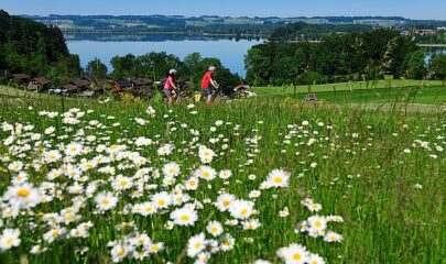 Die sanfte Hügellandschaft des Alpenvorlandes mit Wallersee, Mattsee, Grabensee und Obertrumer See steht für abwechslungsreiche Touren im „Velodrom Salzburger Seenland“.