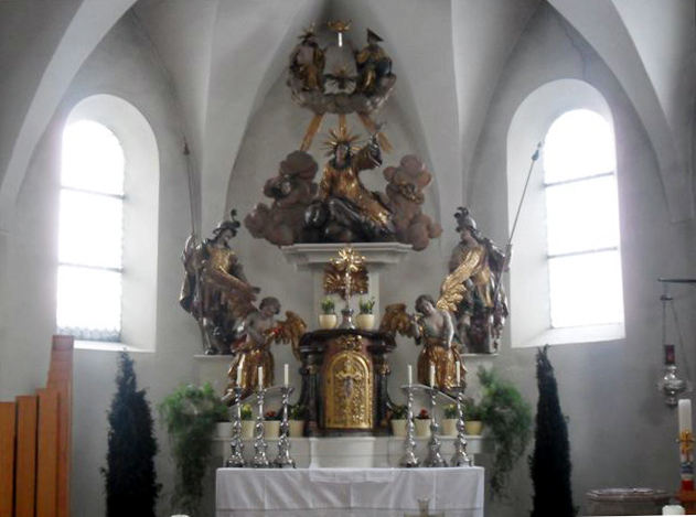 Die Kirche präsentiert sich als einschiffiges, dreijochiges Gebäude mit dreiseitig abgeschlossenem gotischen Chor. Schnitzwerke am Hochaltar stellen die Steinigung des hl. Stephan dar, darüber die Hl. Dreifaltigkeit. Die Statuen des hl. Florian auf der rechten und des hl. Georg auf der linken Seite sind Werke von Meinrad Guggenbichler aus den Jahren 1699-1701.