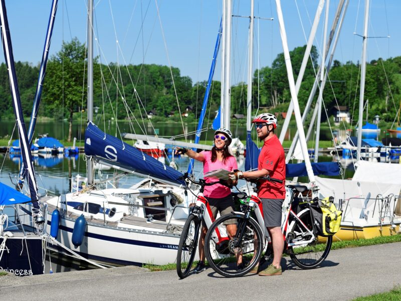Die gemütliche Fahrt auf dem E-Bike führt durch Laubwälder, den Seeufern entlang und zu wunderbaren Aussichtsplätzen. Für Erholung von Körper, Geist und Seele bieten sich Wiegeliegen zum Relaxen und Strandbäder zu einem Erfrischungsbad an.