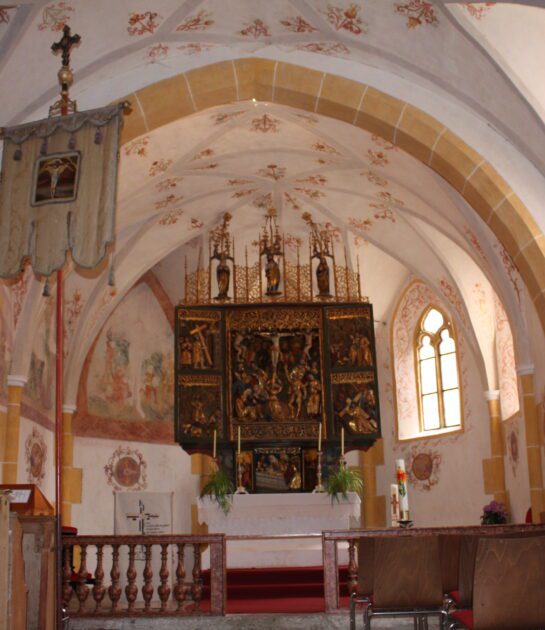 Wieder zurück im Dorf möchten Sie vielleicht die Pfarrkirche Mariä Himmelfahrt besichtigen – der barocke Hochaltar stammt vom Meister Meinrad Guggenbichler.