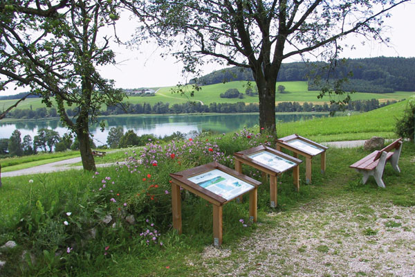 Weginfo: ca. 11,1 km, Gehzeit ca. 3,5 – 4 Stunden, Ausgangspunkt im Ortszentrum von Lochen am See bei der Infotafel, Waldweg daher nicht kinderwagentauglich